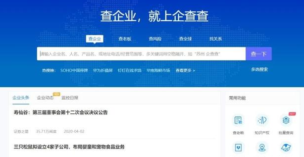 这个时候我们可以打开上述两个网站之一,比如企查查: