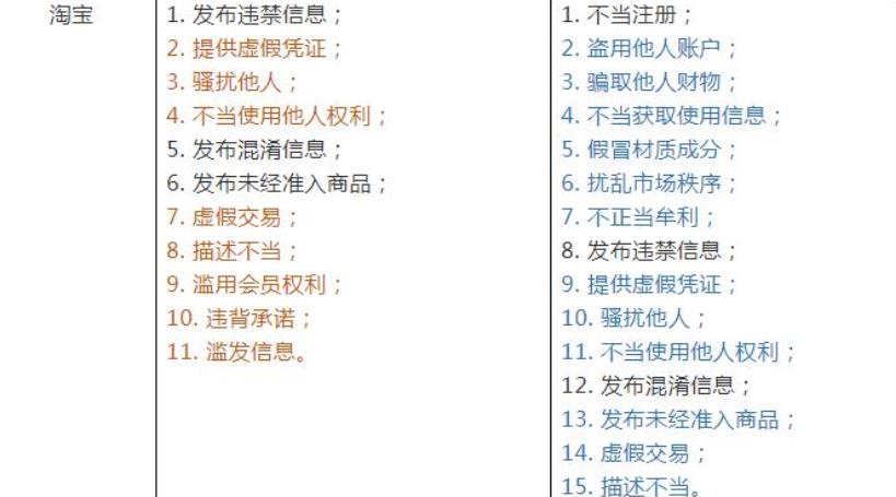说明:变色的内容为天猫和淘宝“一般违规”和“严重违规”行为相同的部分。