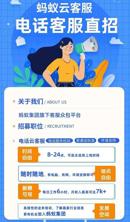长班时:业务熟练后可工作8小时 短班时:8:00-24:00(可自主选择上线时间,灵活就业)