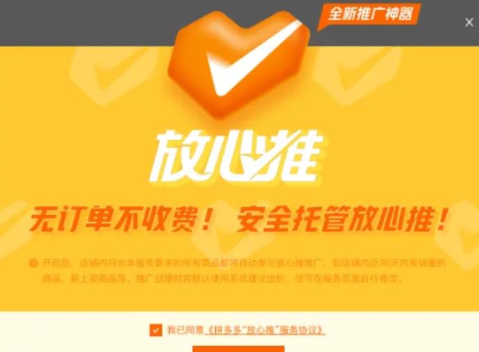 1、拼多多放心推只需为每个商品设定成交出价,完全效果保障,无订单不收费,只有产生了订单,才会扣除相应的费用,这样商家承担的风险就大大降低了。