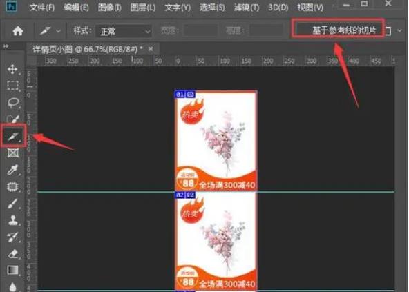 5、做好详情页后切片快捷键C 切片工具,切片好后导出CTRL+ALT+SHIFT+S 存储JPEG格式就可以了