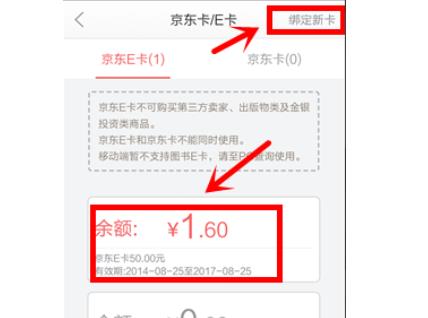 4.点击绑定新卡,在跳转页面输入京东卡的密码,选择绑定就可以兑换了。