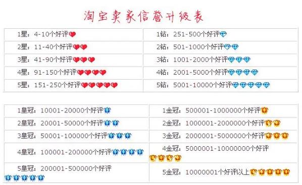 淘宝卖家等级划分